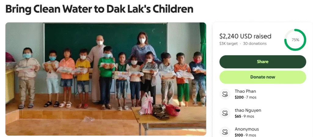 William Pham, co-founder of GKIA, led a public donation campaign via GoFundMe to help finance our water filtration system in Đắk Lắk (2024)